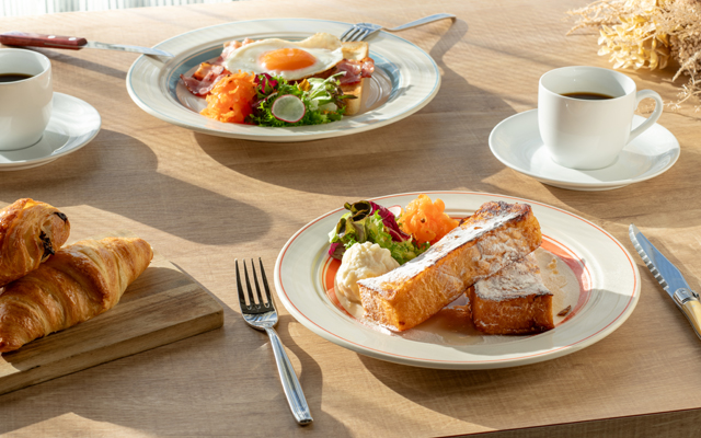 朝食はその日の気分に合わせて選べるサラダビュッフェ付のモーニングプレートや
