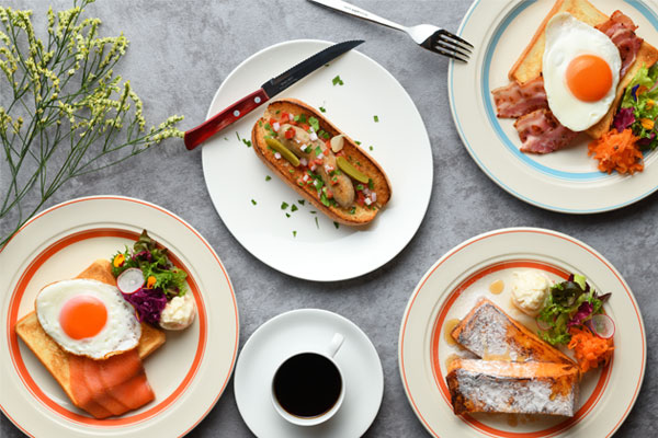 カジュアルスタイルの オールデイダイニング「AD-Base」にて、トーストメニューやホットドッグ、牛タンキーマカレーなどからお好きなものをお選びいただけます。